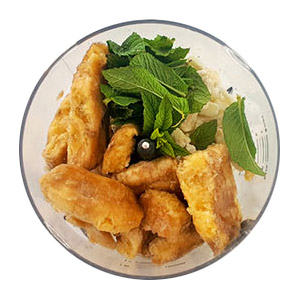 ۱. تمام مواد ذکر شده را به جز چیپس شکلات به یک غذا ساز منتقل کنید.